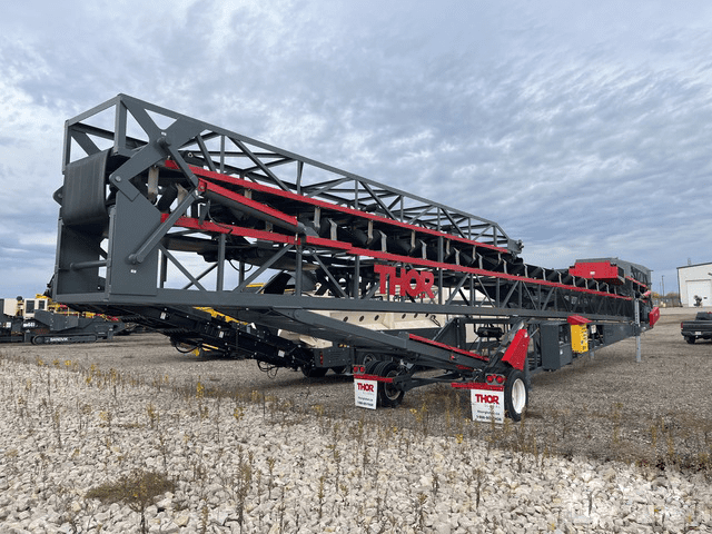 The 2023 Thor 130X36 Portable Radial Stacking Conveyor (Thor TF130) is a heavy-duty, high-performance conveyor engineered for optimal material handling in large-scale operations. Featuring a 130-foot conveyor length and a 36-inch belt width, this model is built to handle substantial volumes with ease. Its radial stacking design provides flexibility, allowing operators to create large stockpiles with a reduced footprint by enabling the conveyor to pivot and deposit materials in multiple directions.