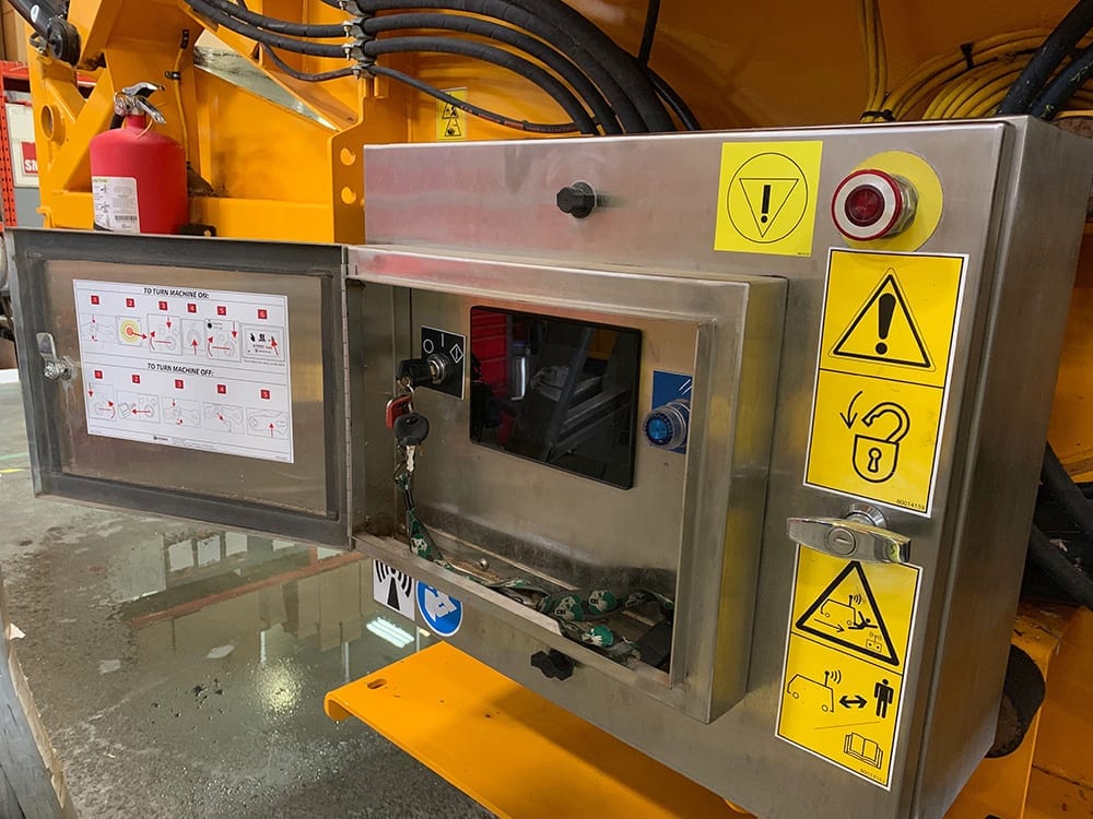 The control system by Parker IQAN provides increased monitoring and protection of the wood disc chipper. Radio remote control with full mechanical backup runs all functions of the machine