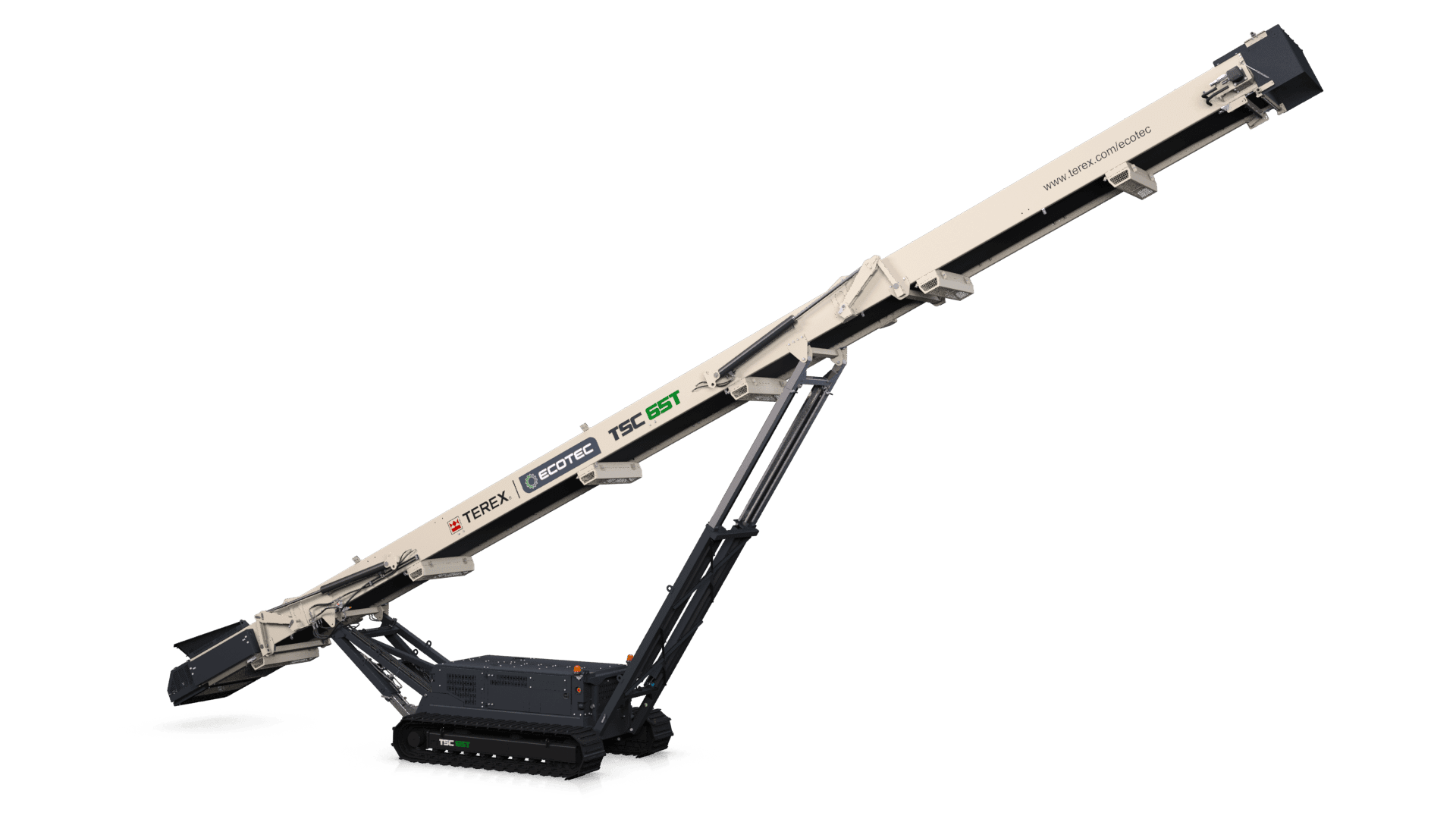 The track in and out design lets operators simply track the machine out and fold into the working position and start conveying material. Hydraulic angle adjustment and belt speed adjustment ensure optimum performance in every application. Maximum discharge height of 8.7m (28’ 6”) and capacities of up to 400tph position the TSC 65T as a leader in the industry.
