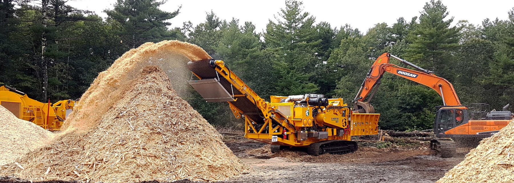 Frontline Machinery's range of horizontal wood grinders and slow-speed shredders are used to efficiently and effectively convert wood waste into valuable products, such as biomass pellets, briquettes, and other forms of alternative fuels. Additional applications span from the basic reduction of wood waste volume before landfilling or composting, to the creation of animal bedding, mulch, and materials for particleboard or other composite products. In the realm of the pulp and paper sector, Frontline Machinery's lineup of disc chippers plays a central role. These chippers are primarily used for processing wood logs and other raw materials, effectively converting them into wood chips utilized as feedstock in paper and pulp manufacturing.